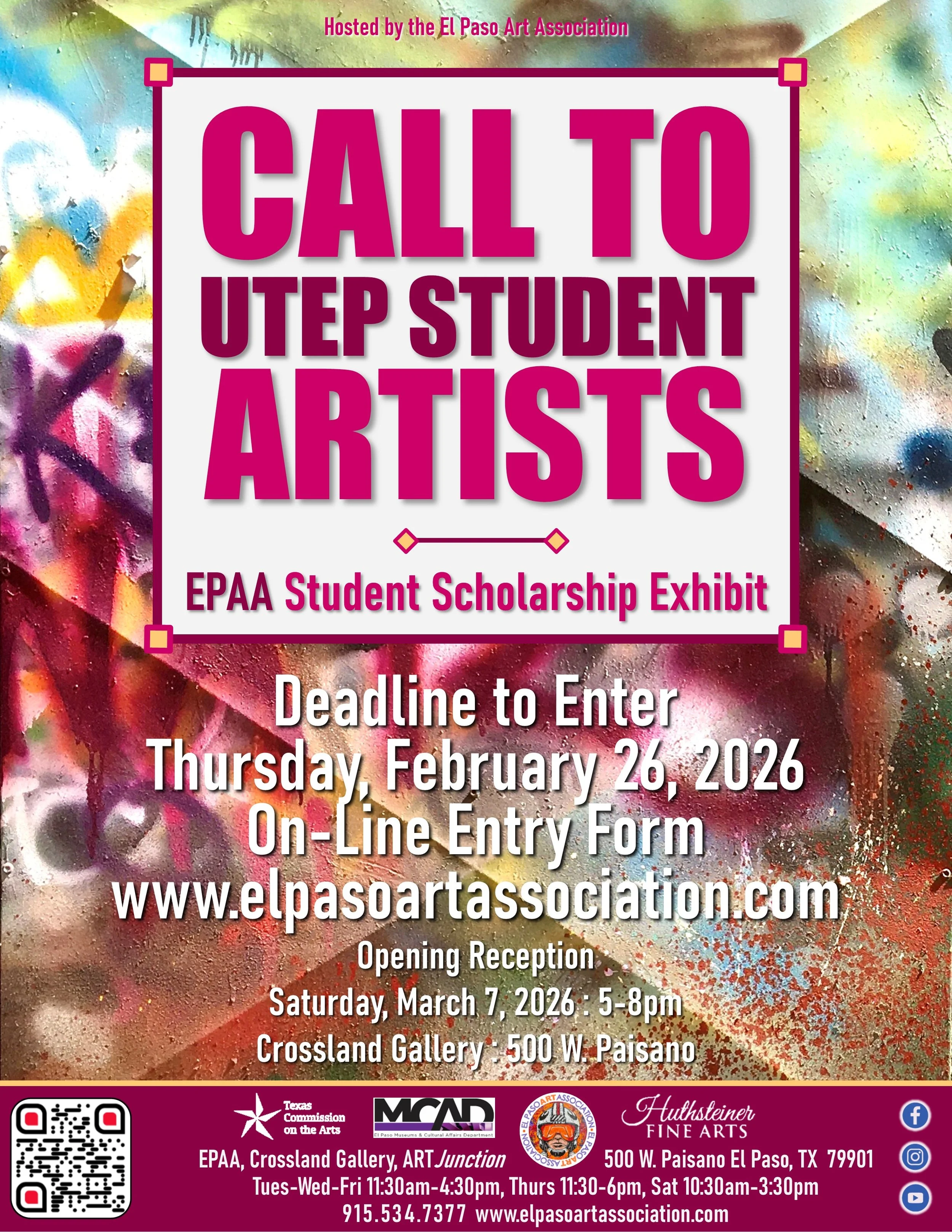 We are excited to invite you to take part in this years scholarship exhibit at the El Paso Art Association's Crossland Gallery!